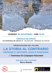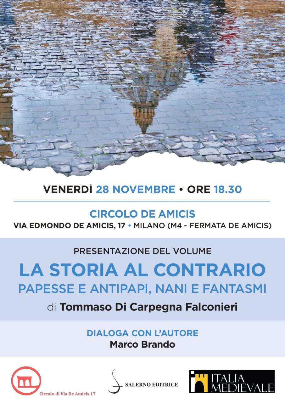Venerdì 28 novembre 2025, alle ore 18.30, presso il Circolo De Amicis di Milano (Via Edmondo De Amicis, 17), si terrà la presentazione del volume La storia al contrario. Papesse e antipapi, nani e fantasmi di Tommaso Di Carpegna Falconieri. Dialoga con l’autore Marco Brando.