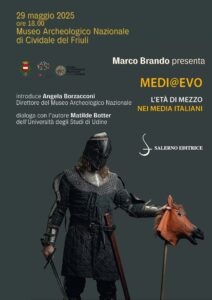 Giovedì 29 maggio 2025 alle ore 18.00, presso il Museo Archeologico Nazionale di Cividale del Friuli (Piazza Duomo, 13), si terrà la presentazione del volume Medi@Evo.L’Età di mezzo nei media italiani di Marco Brando. Introduce Angela Borzacconi (Direttore del Museo), dialoga con l’autore Matilde Botter (Università degli Studi di Udine).