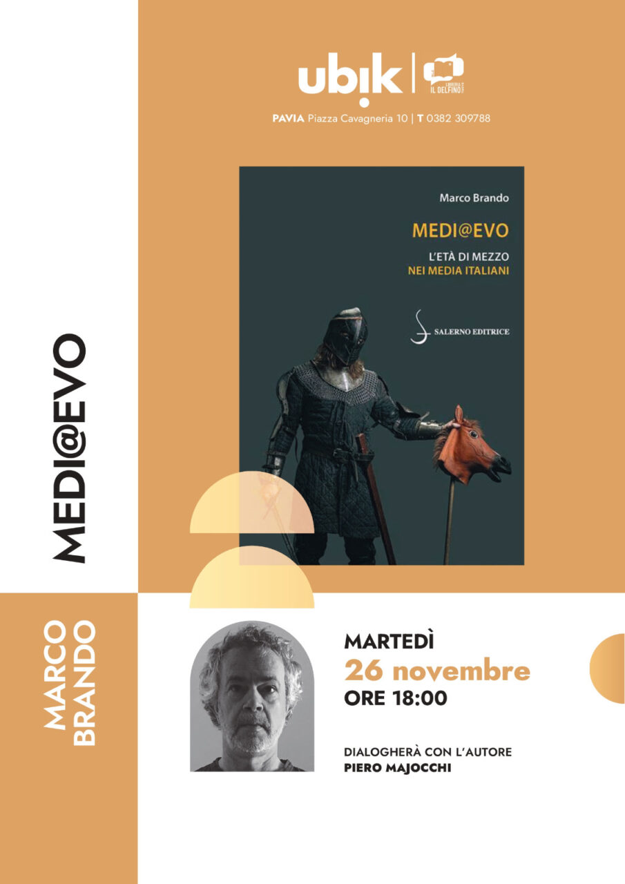 Martedì 26 novembre 2024 alle ore 18.00 presso la Libreria Il Delfino – Ubik  di Pavia (Piazza Cavagneria, 10), si terrà la presentazione del volume Medi@Evo.L’Età di mezzo nei media italiani di Marco Brando. Dialoga con l’autore Piero Majocchi.