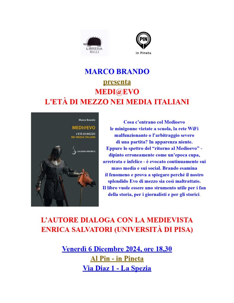 Venerdì 6 dicembre 2024 alle ore 18.30 presso PIN – In Pineta di La Spezia  (Via Armando Diaz, 2), si terrà la presentazione del volume Medi@Evo.L’Età di mezzo nei media italiani di Marco […]
