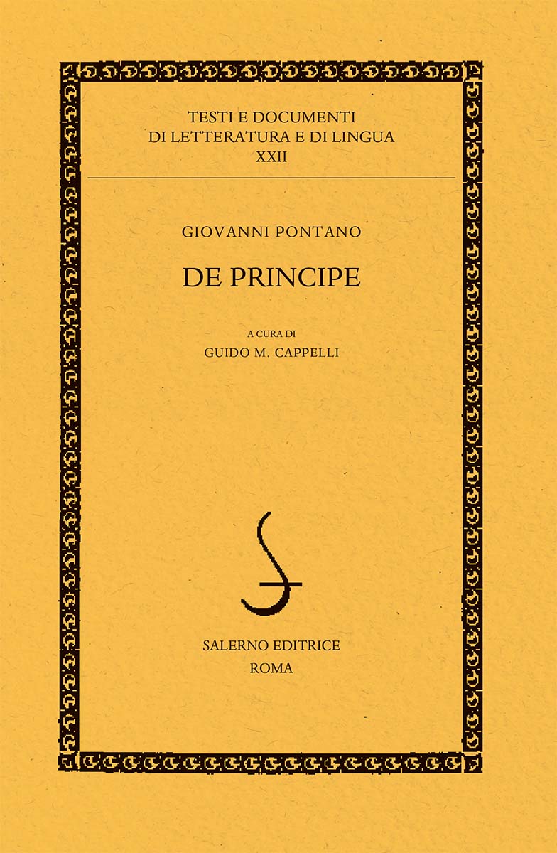 Il De Principe di Giovanni Pontano (1429-1503), uno dei massimi umanisti, scritto intorno al 1465 e pubblicato a stampa nel 1490, è un esempio paradigmatico di “specchio” dei principî umanistici. In esso trova sistemazione il meglio della speculazione politica occidentale, esposta in una prosa brillante in forma di epistola di Pontano al suo giovane allievo, l’erede al trono di Napoli, Alfonso d’Aragona, duca di Calabria. La copiosa annotazione al testo (latino, con traduzione a fronte) mette in luce le radici classiche e gli sviluppi medievali del pensiero pontaniano, nonché i suoi rapporti con la trattatistica contemporanea, individuando vere e proprie “genealogie culturali” per ciascuno dei concetti espressi dall’autore. La traduzione italiana, e lo stile il piú possibile scevro da tecnicismi accademici, facilitano l’approccio al testo anche per il lettore non specialista. Tiratura limitata e numerata di 999 esemplari.