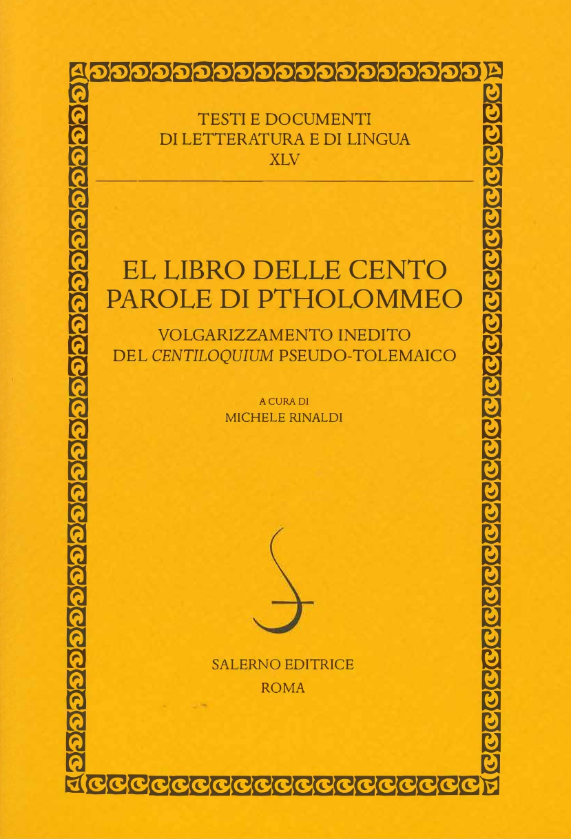 El libro delle cento parole di Ptholommeo. Volgarizzamento inedito del ‘Centiloquium’ pseudo-tolemaico